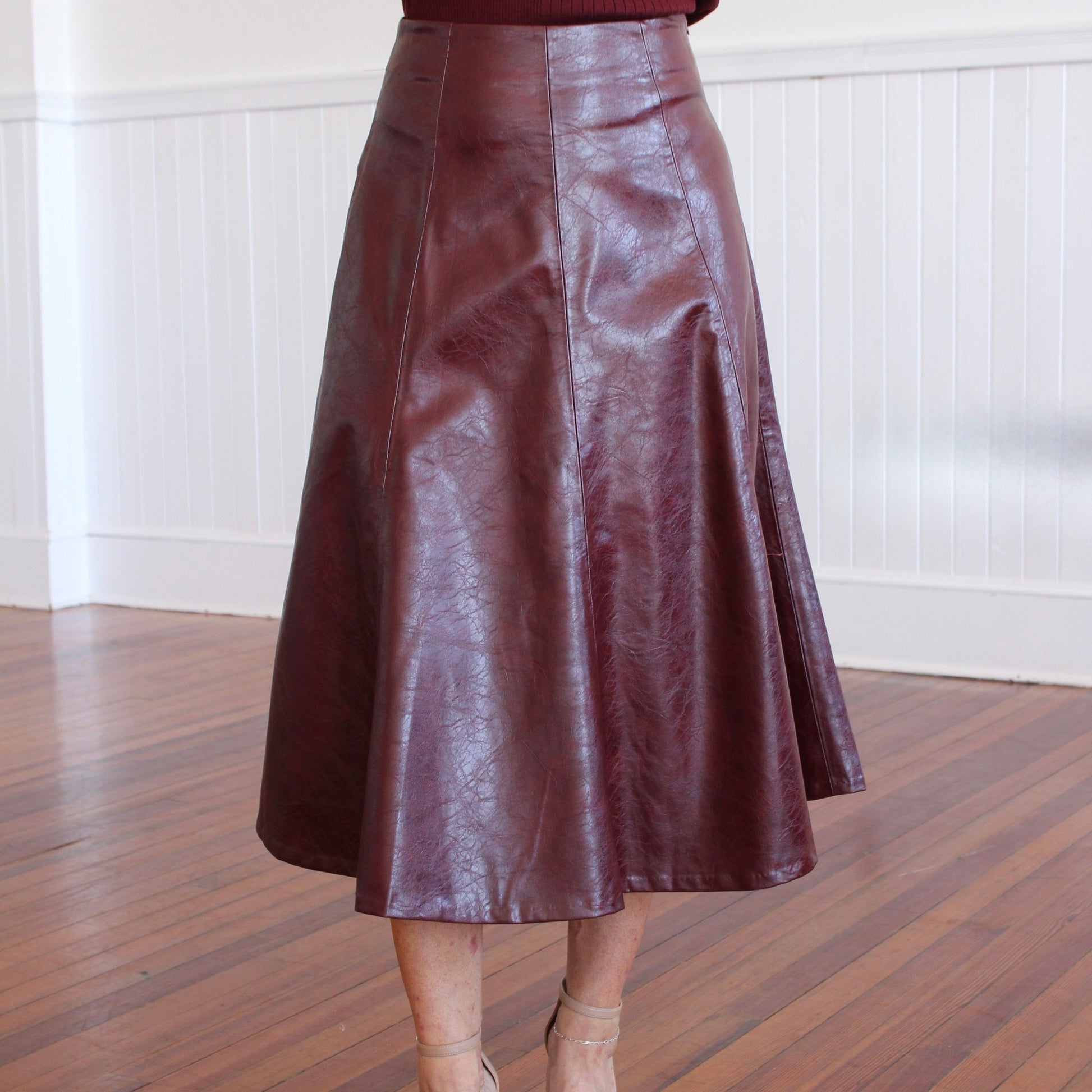 Style meets trend in this faux leather, pleated swing skirt! Perfect for your next occasion or for the holidays! We paired it with a matching top for a monochromatic look! Such a versatile and timeless piece!