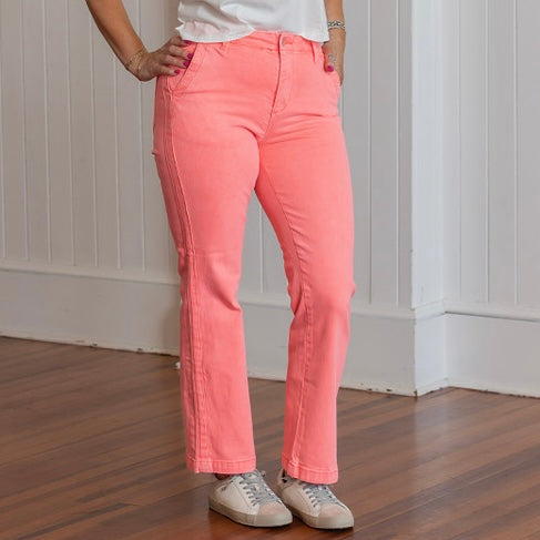 Risen HR Ankle Straight Twill Pants - Coral Pink