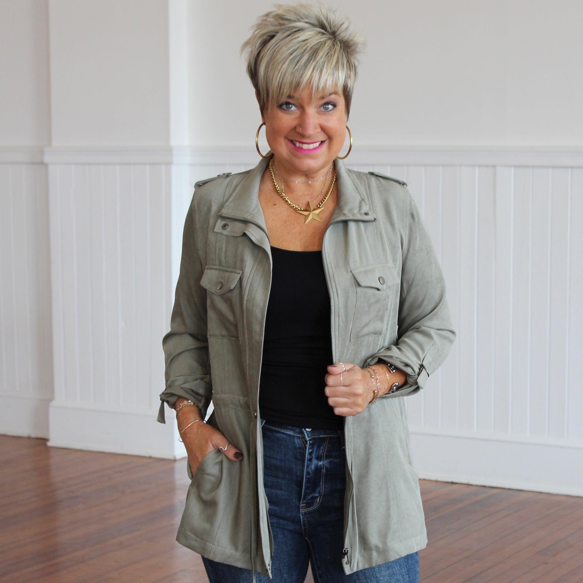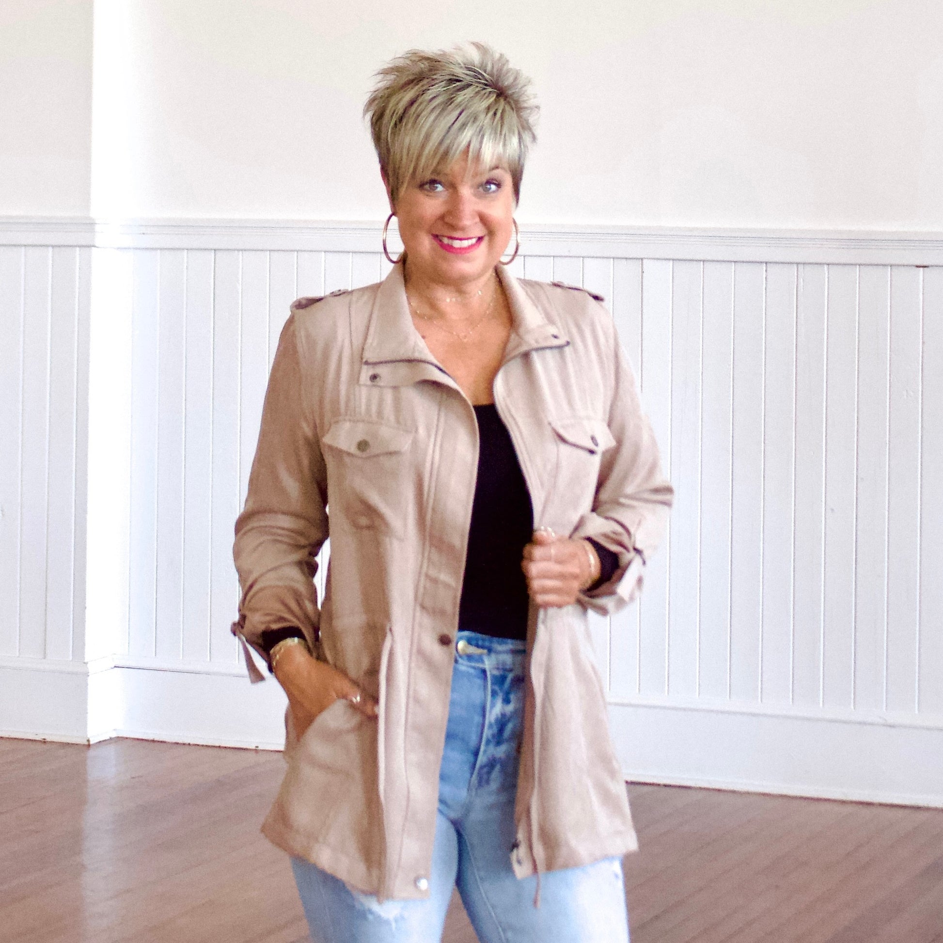 Light Anorak satin jacket featuring super soft suede like fabric makes this the comfiest wear! Designed with front pockets and a cinched waist, we are loving this for the upcoming season! We also have it available in 3 colors!