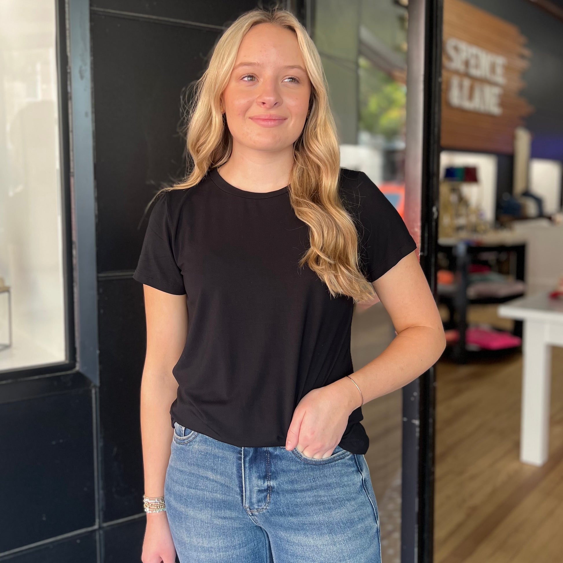 This is a basic crew neck short sleeved t-shirt made with natural bamboo and model fibers. With the round neck detailing, this is the perfect shirt for any occasion!