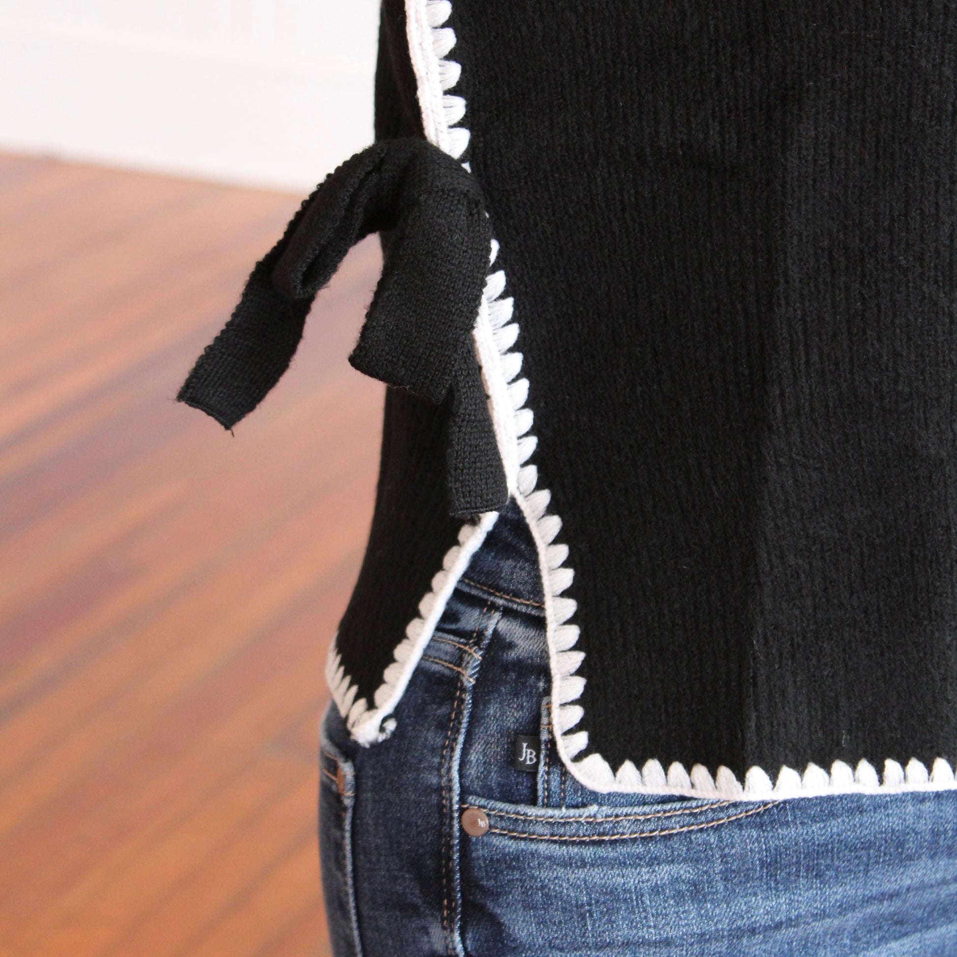 We are loving the side-tie style tops we are getting in! This one is a mock neck with a contrast stitch to give an elegant look to such a comfortable & versatile top. Pair with your favorite jeans or skirt.