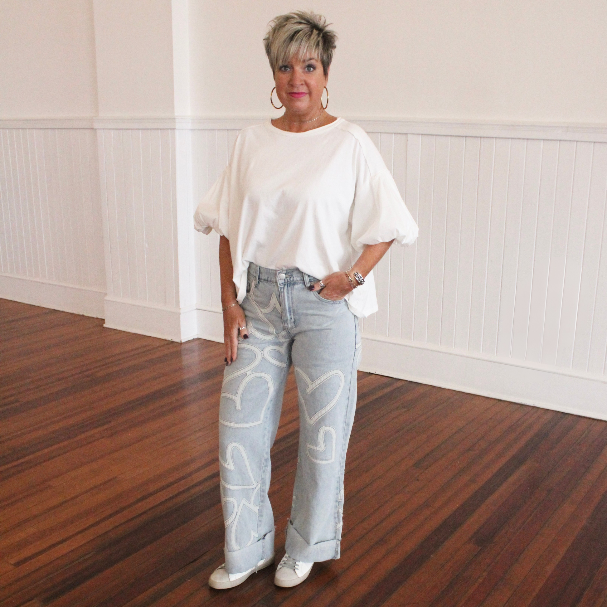 Our unique, heart patchwork denim are a huge seller! These pants are so cute and will definitely get you compliments! How could they not? Just look at them!
