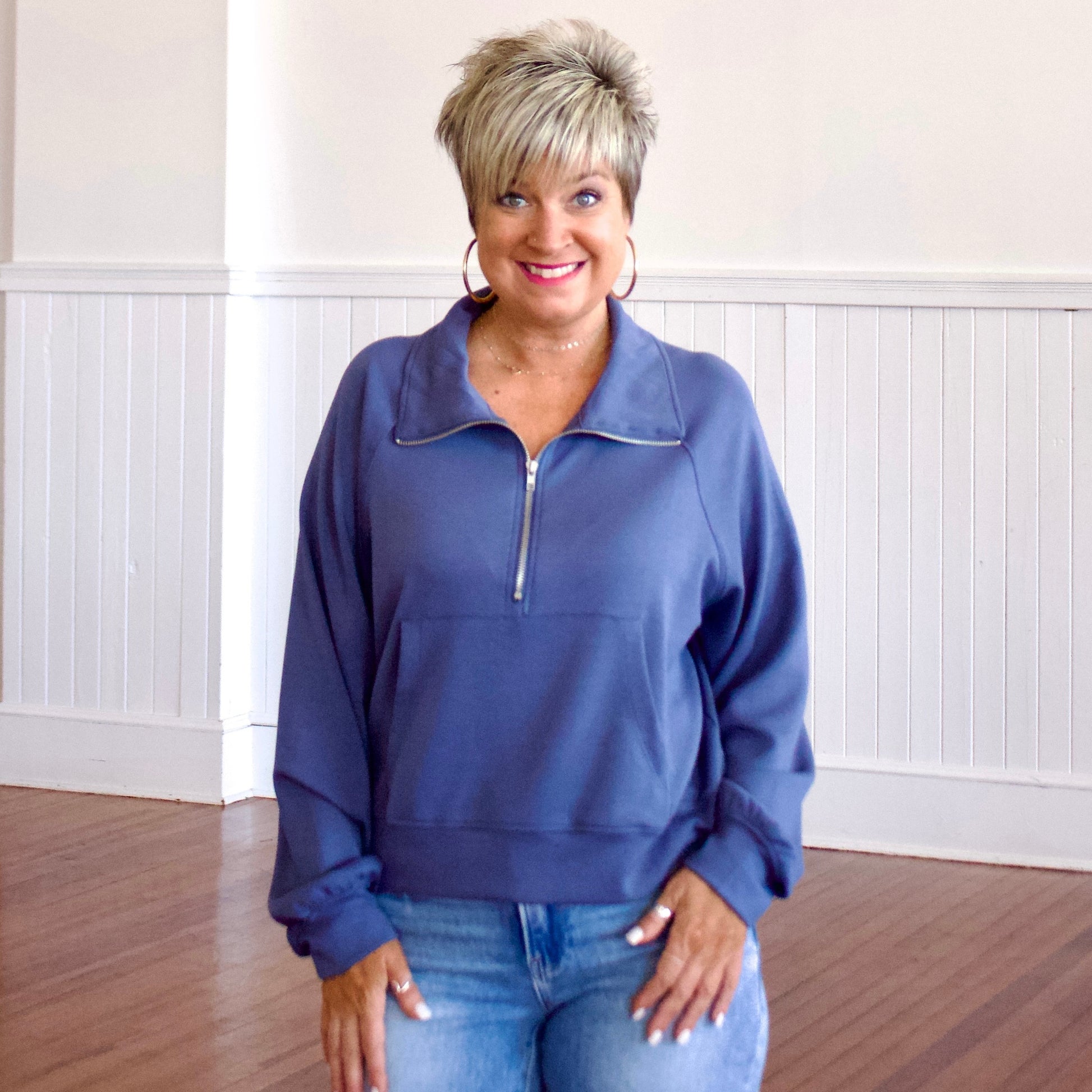 Stay Comfortable And Stylish With This Zip-Up Collar Sweatshirt.
